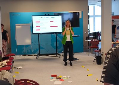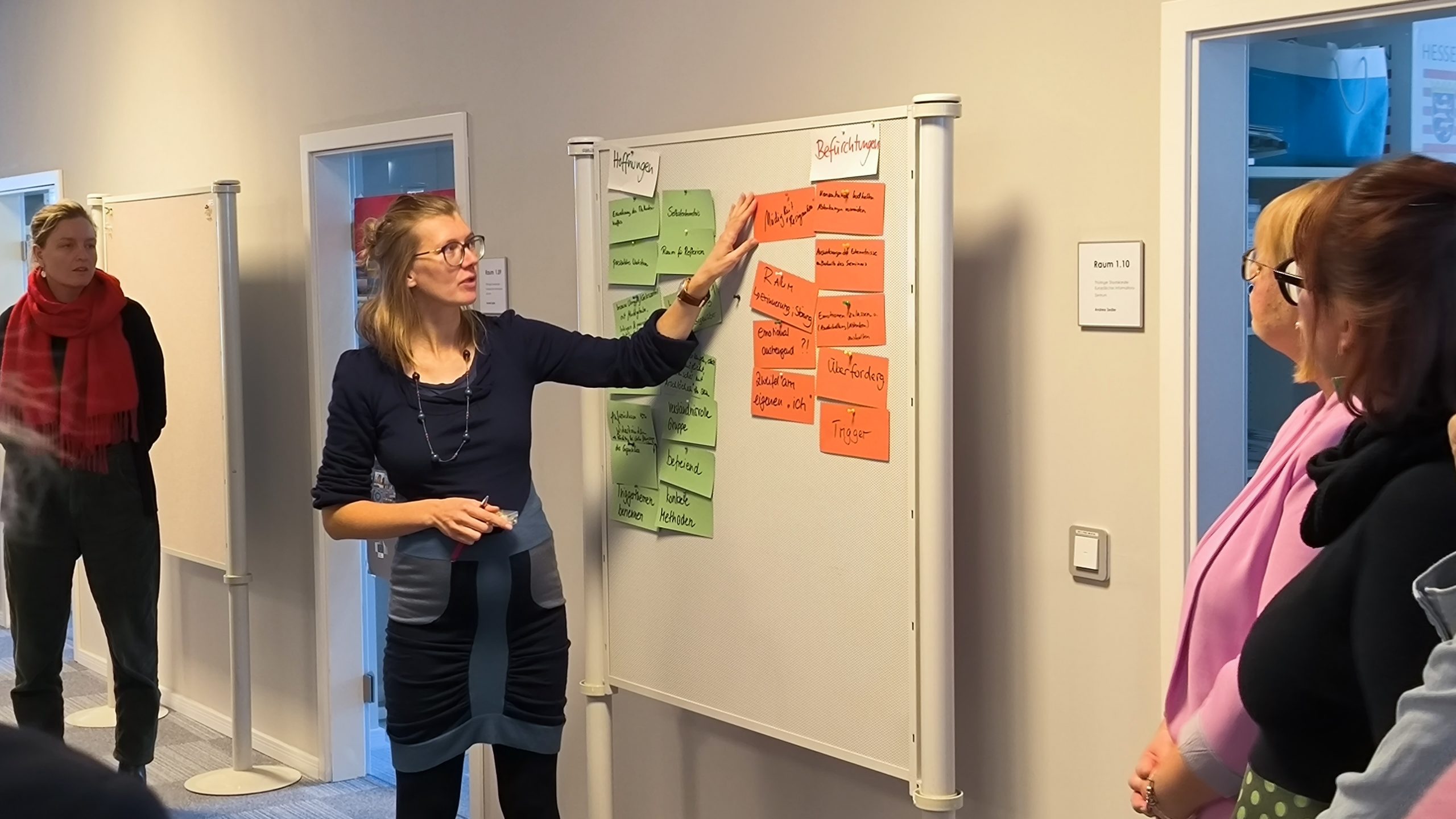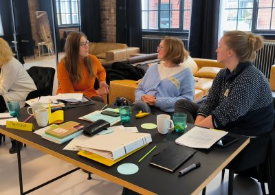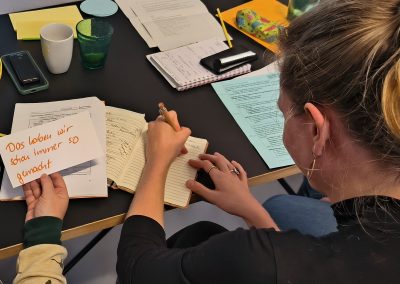 Besonders hervorgehoben wurde von vielen Teilnehmerinnen der kollegiale Austausch während der gesamten Schulung. Durch die gezielte Zusammensetzung der Gruppe kam eine große Bandbreite an Expertise – unter anderem aus Verwaltungsrecht, Nachhaltigkeitsentwicklung, Energieversorgung und Demokratieförderung – sowie vielfältige Vorfahrungen in Kommunikation und Moderation zusammen.
