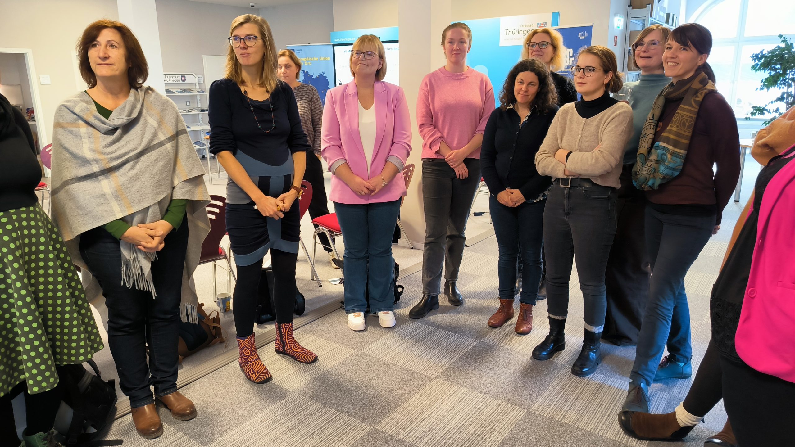Teilgenommen haben 16 engagierte und mutige Frauen aus kommunalen Verwaltungen und Institutionen sowie aus zivilgesellschaftlichen Organisationen in Thüringen, Sachsen-Anhalt, Sachsen und Berlin.